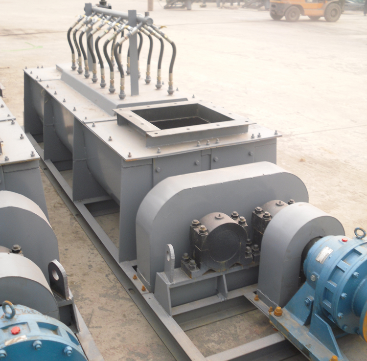 6.雙軸攪拌機設有加濕噴水系統(tǒng),保證噴水均勻,調節(jié)供水量來滿足需要。